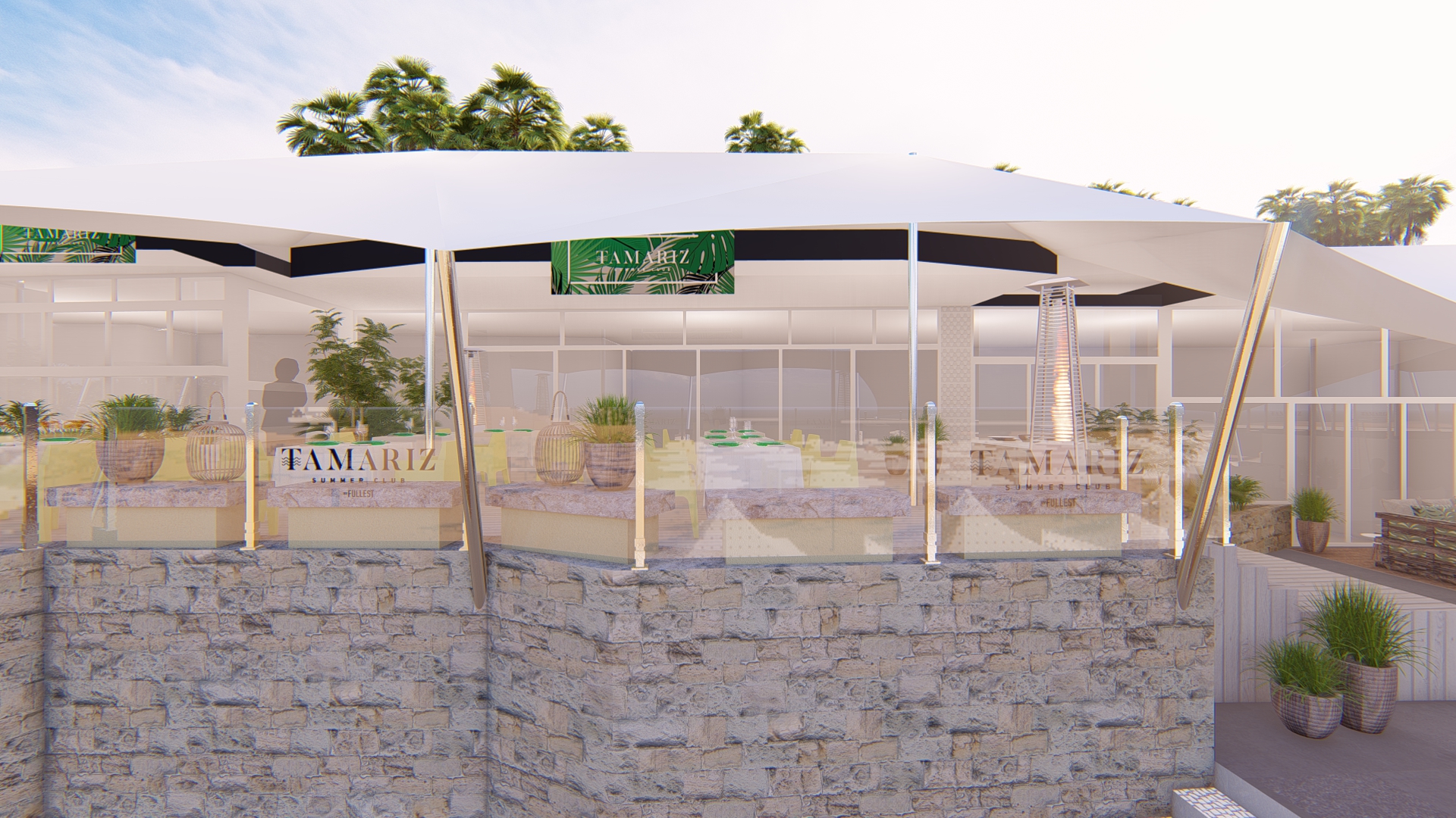 Renderings can be used to study shade options for commercial establishments like cafes and restaurants. In this case, a study was done for a known restaurant and club Tamariz in Estoril, Portugal.